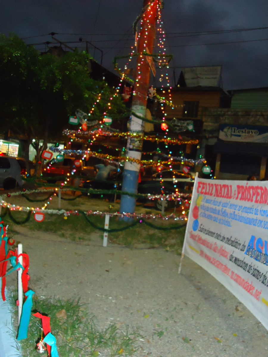 Montada no dia 15 Dez 2013, com o apoio do moradores do bairro e incentivo do comércio local, a equipe da ASV, montou neste dia a ÁRVORE DE NATAL/2013, trazendo para a comunidade um grande alegria e satisfação, pois em outros bairros não existe este incentivo da população. Participaram da montagem: Rosangela(Rosa) e Jacirema(Sonia).